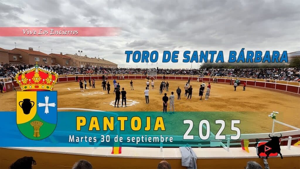 Imágenes EXCLUSIVAS del espectacular toro de@actsantabarbaradepantoja5332 y posterior encierro con dos toros bravos en la localidad manchega de Pantoja. El martes 30 de septiembre de 2025.