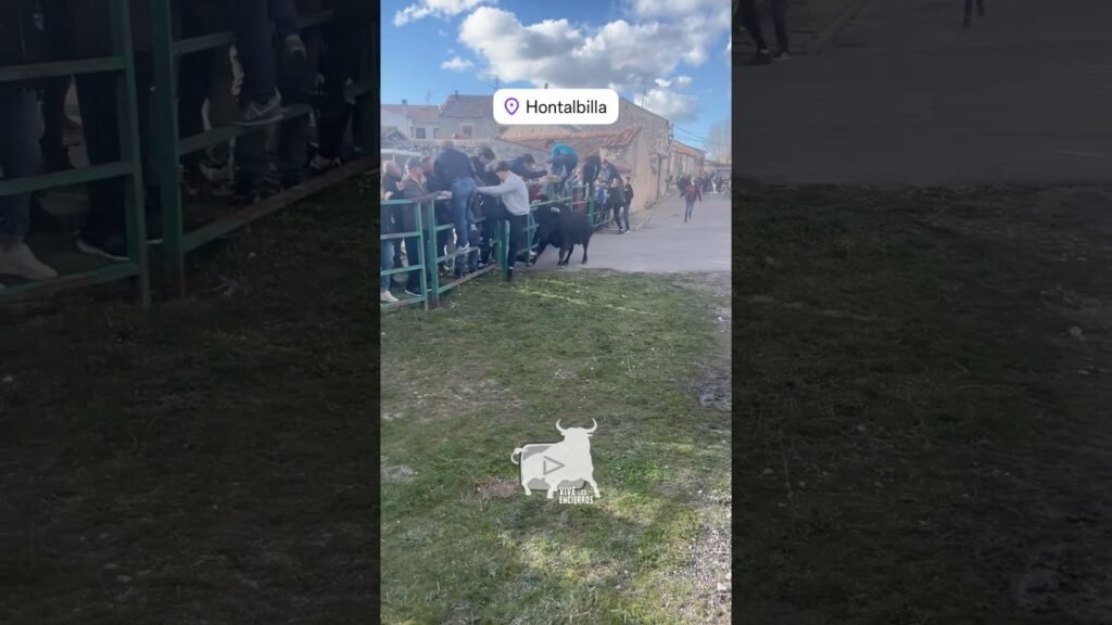 Un hombre no puede subir a la talanquera y el toro le ayuda a subir en Hontalbilla #vivelosencierros