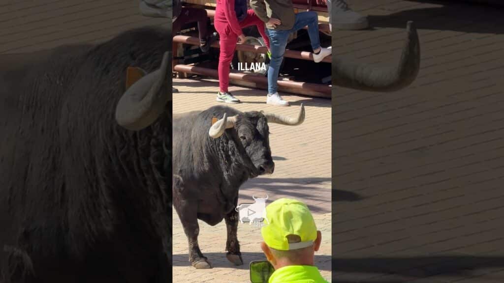 El toro CAMARERO el segundo de los dos toros de la Nostalgia hace su entrada en la plaza del ayuntamiento de “Illana” Guadalajara. #vivelosencierros
