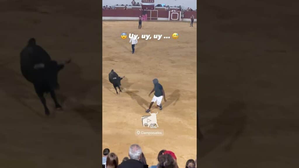 El muchacho no es consciente del daño que puede hacerle una vaca brava y corretea alrededor de ella como si se tratara de un juego con un perro