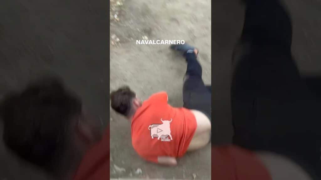 Tropieza justo delante de todos los toros de la manada llevándose un buen susto sin consecuencias