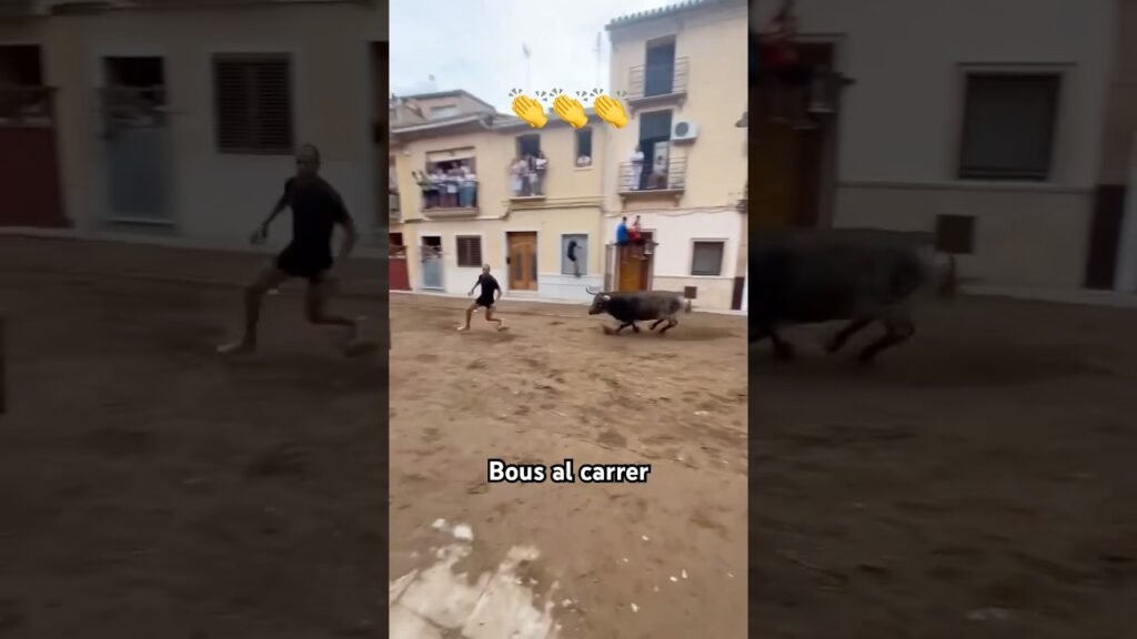 Un quite majestuoso a este toro bravo de lidia dado en el momento oportuno y que salva de una cogida segura y de una desgracia a este mozo en el encierro por las calles de Bous al carrer.